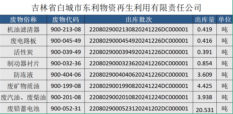 · 東利物資公司2023年度危險廢物轉(zhuǎn)移……